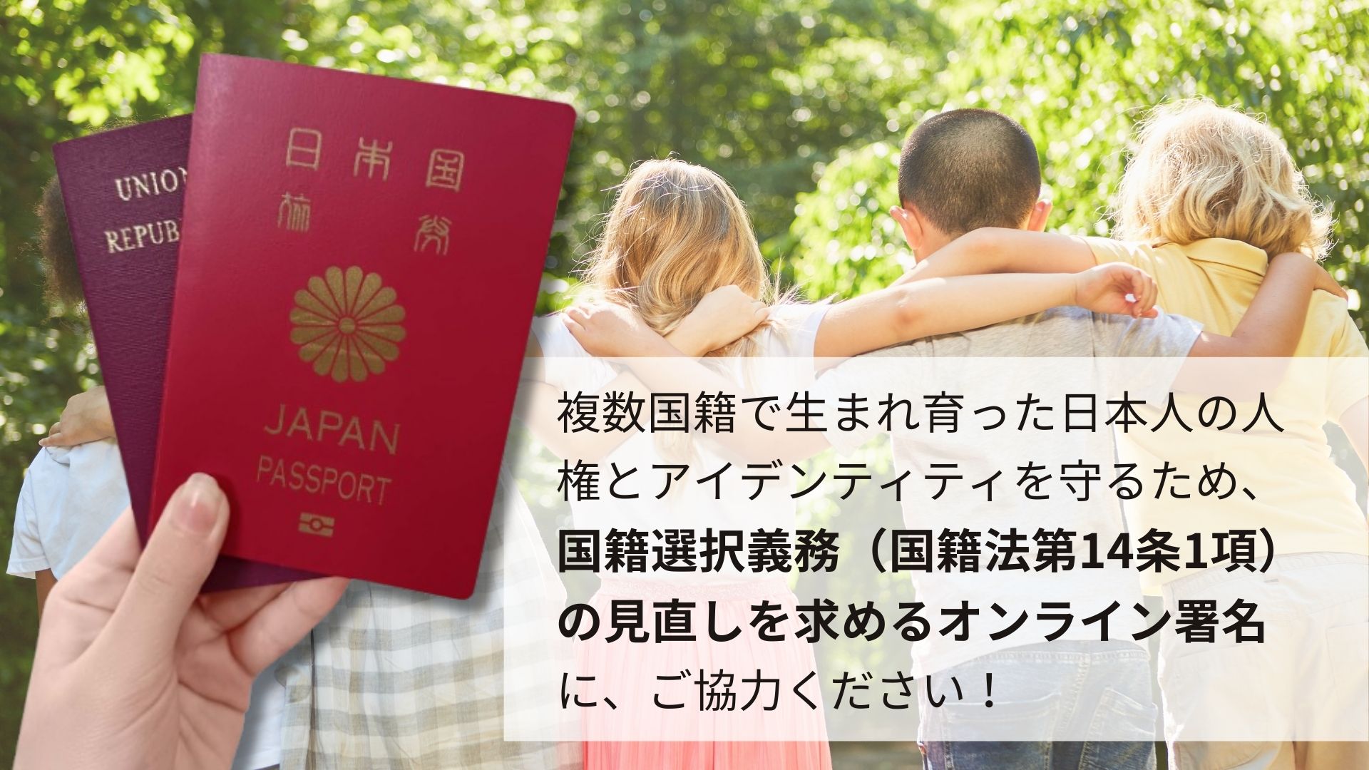 私たちは、国籍法第14条1項で定められる、重国籍で生まれた日本人の若者に課される「20歳までの国籍選択義務」について、この問題に共感する高校生・大学生の日本人と重国籍の日本人を中心とした研究会です。私たちは、本テーマに関連する調査や研究、広報活動を行うと同時に、自らがオピニオンリーダーとなり国籍法第14条1項の改正の必要性を提起します。